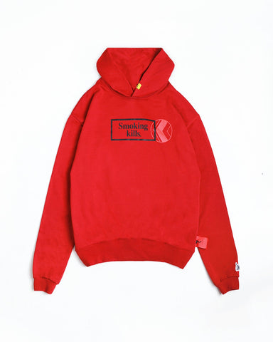 #FR2's famous "Smoking Kills" box design is seen this Hoodie in black font with the collaboration names on the back. To keep you cosy, it’s made from an 100% cotton.